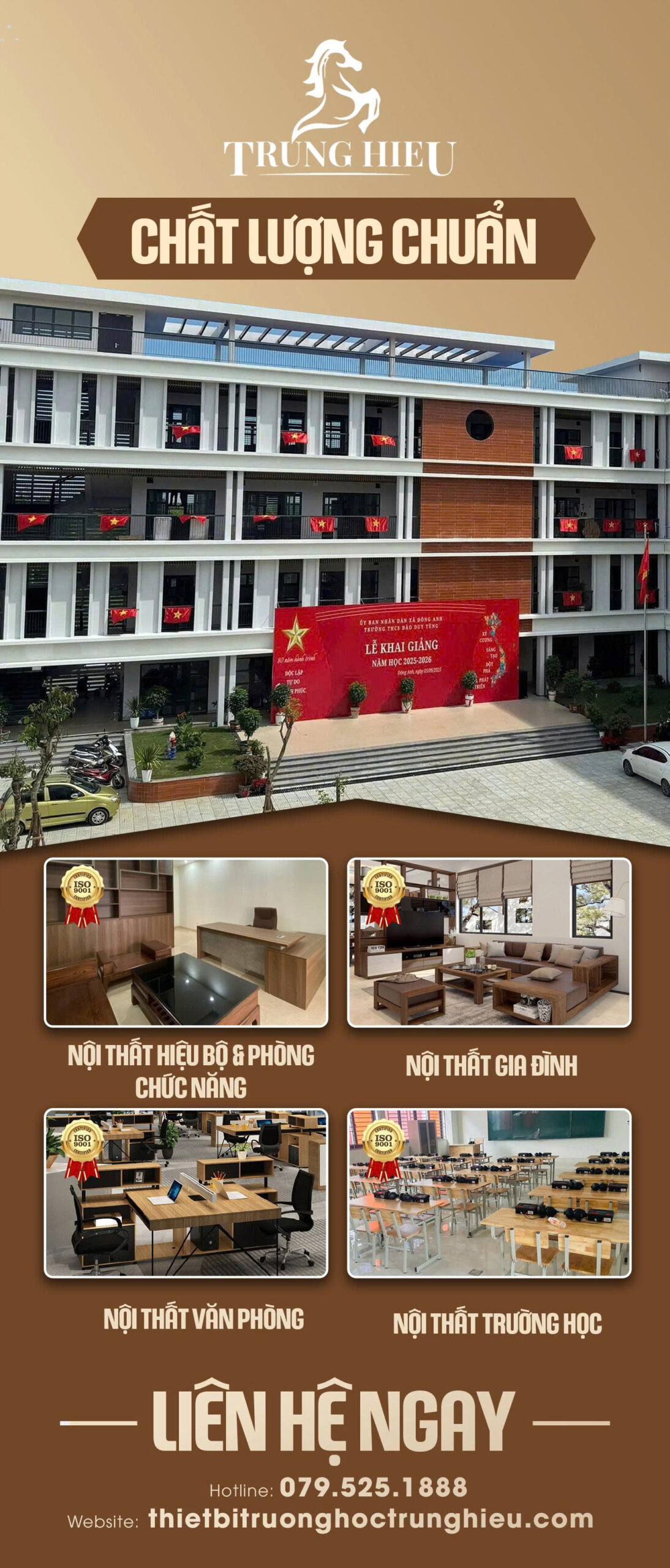 Với phương châm “Chất lượng tạo niềm tin – Uy tín xây thành công”, Trung Hiếu không chỉ mang đến sản phẩm nội thất chất lượng cao mà còn cung cấp giải pháp không gian toàn diện cho trường học, văn phòng và các công trình cao cấp. Hướng tới sự sáng tạo, bền vững và thân thiện với môi trường, Trung Hiếu tiếp tục khẳng định vị thế thương hiệu Việt uy tín trong ngành nội thất.